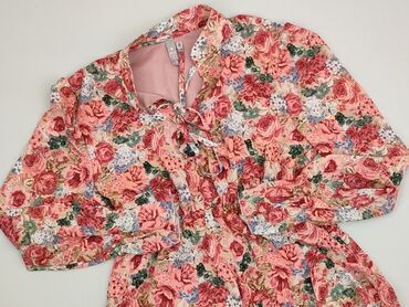 Bluzka damska w kwiaty - Krój: luźny, z zaokrąglonym dołem; bez zapięcia, wkładana przez głowę - Rękawy: krótkie, szerokie, z delikatną falbaną/przeszyciami dającymi efekt bufki - Dekolt: okrągły ...