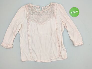 Bladoróżowa bluzka z koronką i stójką - Materiał: 65% wiskoza, 35% poliester (metka na zdjęciu), wyprodukowano we Włoszech - Delikatna, półprzezroczysta tkanina, lekko lejąca - Ozdobna, ażurowa ko...