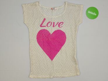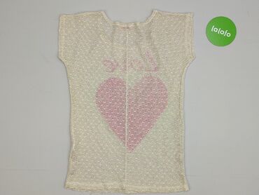 Ażurowa bluzka damska z krótkim rękawem - Kolor: kremowy/ecru - Fason: prosta, lekko luźna, z rozcięciami po bokach u dołu - Dekolt: V-neck z ozdobnym, plecionym wykończeniem - Rękaw: krótki, zako...Stan: