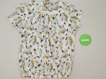 Bluzka damska z krótkim rękawem, biała w wielobarwny, botaniczny wzór: - motywy kwiatów, liści, motyli i ptaków w intensywnych kolorach (róż, czerwień, żółć, turkus, fiolet) - krój prosty, luźniejs...
