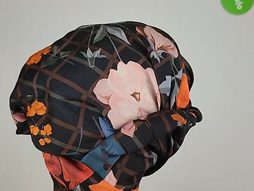 - Wzór: czarna kratka z dużym, kolorowym nadrukiem kwiatowym (odcienie pomarańczu, różu, niebieskiego, zieleni)