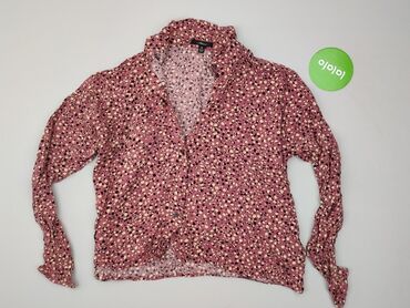 Bluzka damska Resrts, rozmiar M - Kolor: czarny w różowy, drobny kwiatowy wzór - Krój: długi rękaw, falbana biegnąca przez przód i tył - Dekolt i karczek z ażurowej, koronkowej tkaniny; z tyłu łezk...