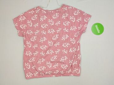 Bluzka damska Page One, rozmiar L/XL - Kolor: pudrowy róż - Fason: luźny, z doszytą falbaną u dołu, krótki rękaw, okrągły dekolt - Przód: duża aplikacja litery „M” z ozdobnymi perełkami na tle kwi...