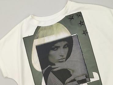 Bluzka damska z krótkim rękawem - Kolor: biały z nadrukiem czarnych i jasnoszarych gwiazd na całej powierzchni - Krój: luźny, prosty, opuszczone ramiona, okrągły dekolt - Rozmiar na metce: M - Mat...