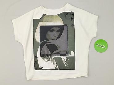 Bluzka damska z krótkim rękawem - Kolor: biały z nadrukiem czarnych i jasnoszarych gwiazd na całej powierzchni - Krój: luźny, prosty, opuszczone ramiona, okrągły dekolt - Rozmiar na metce: M - Mat...Stan: