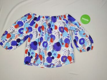 Bluzka damska z kolorowym, abstrakcyjnym printem - Krój: luźny, z dekoltem w serek - Rękaw: 3/4 - Materiał: 100% poliester (metka w środku) - Rozmiar z metki: XL - Wzór: wielobarwny, graficzny mix...