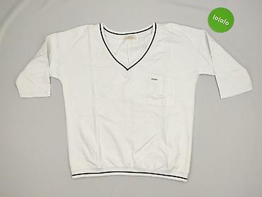 Biała bluza marki Megi Collection z krótkim rękawem, idealna do noszenia na co dzień. Wykonana z 96% bawełny i 4% elastanu, co zapewnia komfort i elastyczność. Dekolt i dół bluzy wykończone są ścią...Stan: