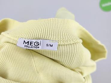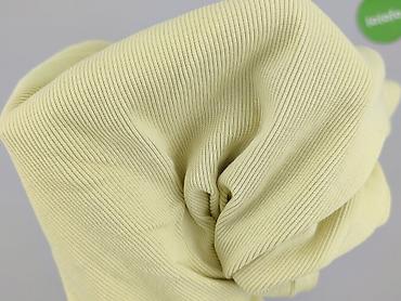 Żółta bluzka damska z krótkim rękawem - Fason: luźny, z obniżoną linią ramion i szeroką górą, zwężany ku dołowi (nietoperz/dolman) - Rękawy: krótkie - Dekolt: okrągły - Materiał: dzianina swetrowa...