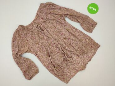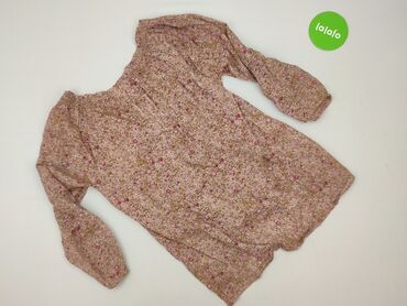 Bluzka damska z krótkim rękawem, rozmiar M. - Kolor: przygaszony róż z drobnym melanżowym wzorem. - Krój prosty, swobodny. - Dekolt z przodu w kształcie litery V, z tyłu półokrągły z ozdobnym pa...
