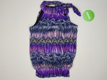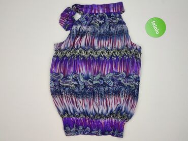 Damska bluzka bez rękawów - Kolor: jasnoniebieski - Krój: luźny, lekko rozkloszowany dół; dekolt w serek z krótkim zamkiem - Materiał: 100% poliester – lekka, delikatnie połyskująca tkanina - Rozm...