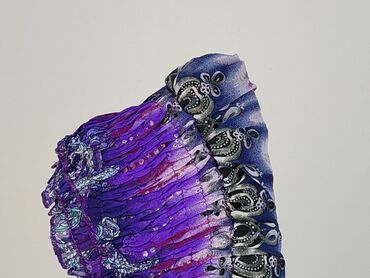 - Wzór i kolor: intensywne fiolety z domieszką różu, granatu i bieli; orientalne, paisley’owe motywy i pasy. Materiał miejscami delikatnie marszczony/karbowany, dodający objętości.