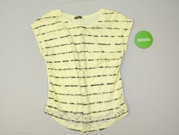 Bluzka damska Diverse, rozmiar S. - Krój: luźny, z krótkim rękawem typu kimono; okrągły dekolt - Wzór: poziome paski w kolorze musztardowym z białym - Dół z ozdobnym wiązaniem po lewej stronie - M...