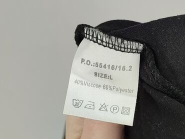Bluzka damska w grochy - Kolor: czarny w białe kropki - Krój: luźny, lekko wydłużony tył, krótkie rękawy - Dekolt: zaokrąglony z krótkim rozcięciem z przodu - Detale: dwie dekoracyjne, metaliczne ...