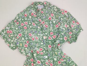 Bluzka damska WAREHOUSE - Rozmiar: 12 (metka) - Kolor: biały w kwiatowy wzór w odcieniach różu i zieleni - Fason: zapinana z przodu na rząd małych guzików - Rękawy: krótkie, lekko bufiaste z delik...
