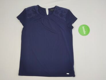 Bluzka damska MOHITO - Marka: MOHITO - Rozmiar z metki: 38 - Kolor: granatowy/indygo - Krój: luźny, z krótkim rękawem typu kimono - Dekolt: w kształcie litery V - Zapięcie: asymetryczny rząd guzik...