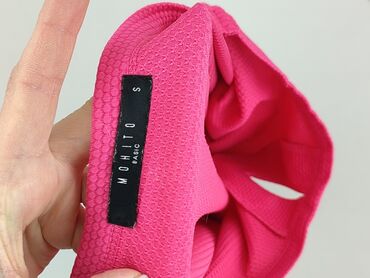 Bluzka damska Mohito Collection, rozmiar S. - Kolor: jasny pudrowy róż - Fason: dopasowany, z krótkim rękawkiem (cap sleeve) - Ozdobny kołnierzyk: czarna koronkowa aplikacja z błyszczącymi koralik...