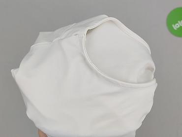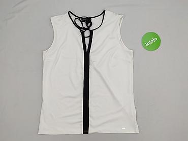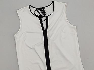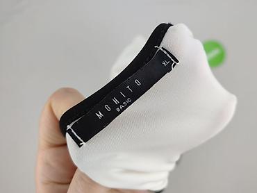 - Kolor: biały z czarną, kontrastową lamówką przy dekolcie i pionową wstawką z przodu; zawiązywana przy szyi