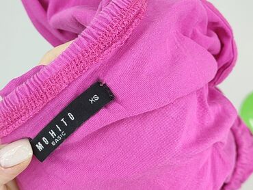 Bluzka damska Mohito Collection - Rozmiar: XS - Krój: luźny, lekko rozkloszowany dół - Dekolt: hiszpański/opadający na ramiona z elastyczną, marszczoną gumką i troczkami do wiązania - Rękawy: dług...