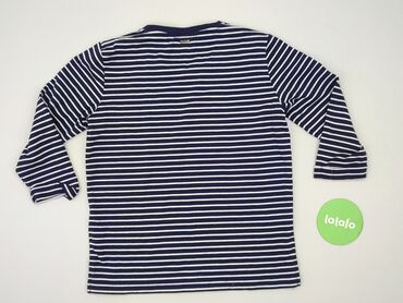 Bluzka damska 157 - Krój: klasyczny top z rękawem 3/4 - Wzór: granatowo-białe, poziome paski (styl marynarski) - Dekolt: zaokrąglony, z krótką patką i przeszyciem dekoracyjnym - Zapięcie: dwa guzi...