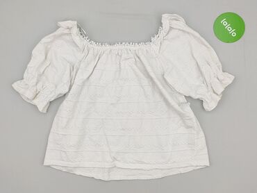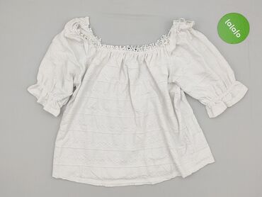 Bluzka damska MOHITO - Model: krótka, z przodem zapinanym na guziki - Rozmiar z metki: 36 - Kolor: biały - Materiał: 100% bawełna (lekka, przewiewna tkanina) - Detale: - romantyczne falbaniaste ...Stan: