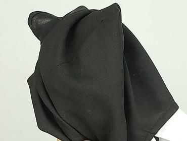 - Model: czarna bluzka z kontrastowym, białym kołnierzykiem typu Peter Pan