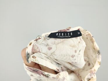 Bluzka damska Mohito Basic - Marka: Mohito (linia Basic) - Rozmiar z metki: 32 - Krój: lekko luźny, z krótkim rękawkiem typu cap - Dekolt: okrągły z delikatną stójką - Zapięcie: na guziki z przodu...
