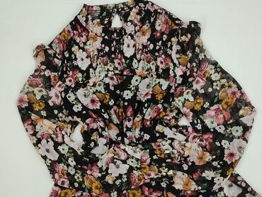Bluzka damska Mohito, rozmiar 38 - Krótki, luźny krój typu crop - Krótkie rękawy - Zapięcie na guziki z przodu - Kołnierzyk - Sznurek do regulacji/wiązania u dołu - Wzór w intensywne kwiaty: odcien...