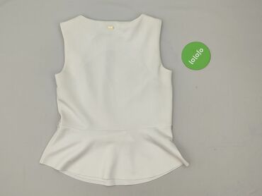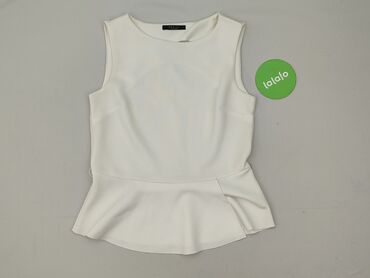 Bluzka damska MOHITO Collection, rozmiar M. - Kolor: biały - Krój: bez rękawów - Detale: efektowne, szerokie plisowane falbany na ramionach; okrągły dekolt; zapięcie z tyłu na guzik z małą łezką -...