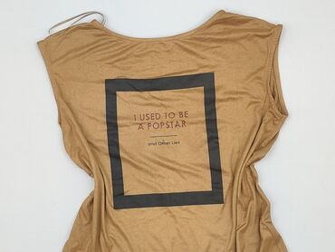 Bluzka damska Mohito, rozmiar 34 (z metki). - Kolor: beżowy/nude. - Fason: luźniejszy top bez klasycznych rękawów, z lekko zaokrąglonym dołem. - Dekolt: łódkowy, ozdobiony dekoracyjnym złotym ła...