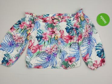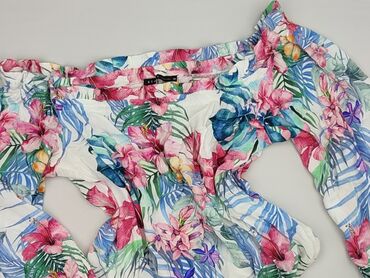 Bluzka damska Mohito, rozmiar M - Krój: luźny, boxy, z krótkim rękawem - Dekolt: głęboki w kształcie litery V z jednolitym jasnym wykończeniem - Wzór: botaniczny/roślinny z motywem liści i kwiatów...