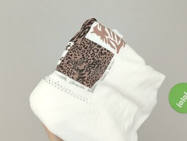 Bluzka damska w zwierzęcy print (panterka) - Krój: luźny, z krótkim rękawem, zaokrąglony dół - Wzór: czarne i brązowe cętki na jasnym tle - Materiał: 100% wiskoza (informacja z metki) - Tkanina lek...