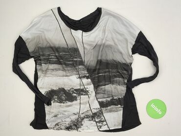Bluzka damska z długim rękawem, rozmiar XL. - Kolor: czarne tło z wielobarwnym, kwiatowym nadrukiem w okręgach. - Fason: luźniejszy, długość za biodra; rękawy 3/4–długie; okrągły dekolt. - Materia...Bluzka damska Monnari