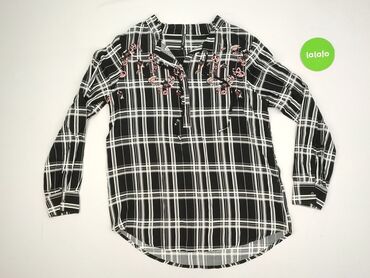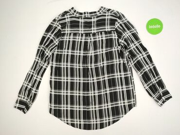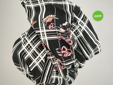 Bluzka damska MooDoo, rozmiar M. - Kolor: czarny w biały, drobny roślinny wzór. - Fason: lekko taliowany, z dłuższym, zaokrąglonym dołem. - Rękawy: długie, marszczone przy mankietach. - Dekolt: w ...