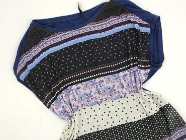 Bluzka damska MOODO - Kolor: granatowy - Krój: luźny, prosty - Dekolt: okrągły - Rękawy: 3/4 z efektownymi, podwójnymi falbanami - Materiał: lekki, zwiewny (tkanina o delikatnej fakturze, nieelast...