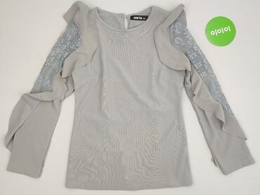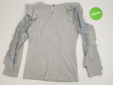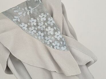 Bluzka damska z krótkim rękawem, dwuwarstwowa. - Przód: miękka dzianina w kolorze jasnoszarym melanż. - Tył i dół: czarna, półprzezroczysta tkanina tworząca przedłużenie i lekki, warstwowy efekt. ...