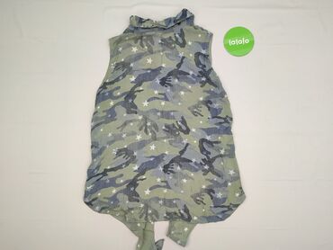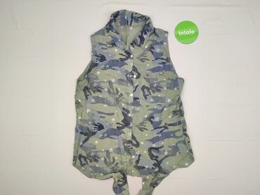 Bez rękawówBluzka damska bez rękawów z kołnierzykiem, w militarnym wzorze moro z dodatkiem białych gwiazdek. Zapinana z przodu na białe guziki. Bluzka posiada dwie małe kieszenie na wysokości klatki piersiowej. Dół bluzki zakończony jest wiązaniem, co dodaje jej swobodnego charakteru. Idealna na cieplejsze dni, do noszenia zarówno na co dzień, jak i na weekendowe wyjścia.