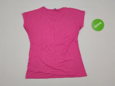 Bluzka damska w kolorze intensywnego fuksji. - Krój: luźny, z marszczeniem pod dekoltem - Dekolt: szeroki, zaokrąglony - Rękaw: do łokcia - Rozmiar z metki: M - Skład materiału: 96% wiskoza, 4% el...