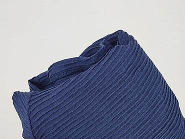 Granatowa damska bluzka z krótkim rękawem - Krój: prosty, luźniejszy, z okrągłym dekoltem - Materiał: cienka, lekka dzianina o trójwymiarowej, żakardowej fakturze (delikatny pionowy wzór) - Wykońc...