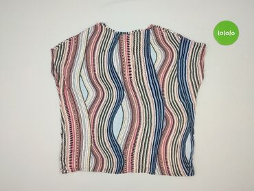 Bluzka damska Elit, rozmiar 44 - Fason: luźny, prosty krój z krótkim rękawem - Dekolt: okrągły - Materiał: 70% wiskoza, 30% poliester (lekka, przewiewna tkanina) - Wzór: ornamentalny, mozaikowo‑ge...