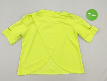 Bluzka damska z krótkim rękawem w neonowym, limonkowym kolorze. - Krój: lekko dopasowany, długość do bioder - Dekolt: głęboki V z marszczeniem na środku, podkreślającym linię biustu - Rękawy: krót...Stan:
