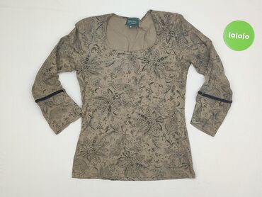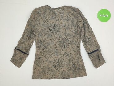Bluzka damska z długim rękawem i dekoltem w serek. - Krój: lekko taliowany, klasyczna długość do bioder - Rękawy gładkie w odcieniu beżowo‑oliwkowym; korpus z roślinnym nadrukiem – duże kwiaty w c...