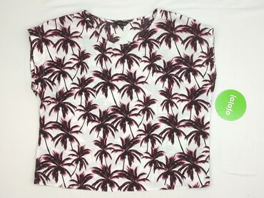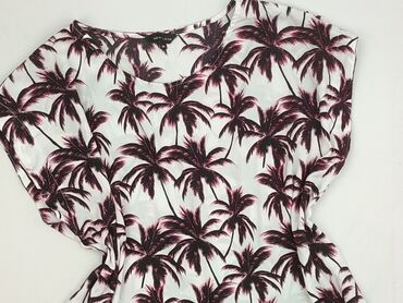 Bluzka damska z krótkim rękawem marki New Look. Charakteryzuje się luźnym fasonem i kwiecistym wzorem w odcieniach różu, niebieskiego i czerwieni na jasnym tle. Dekolt w kształcie litery V i brzegi...