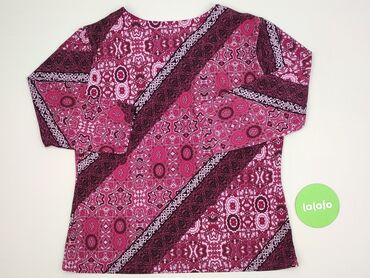 Bluzka damska JYOTHI, rozmiar XXL - Krój: luźny, prosta linia, krótkie rękawki typu kimono - Dekolt: okrągły - Wzór: geometryczne/etno, pionowe i skośne pasy ze strzałkami - Kolory: fiolet, pomara...