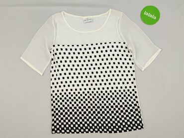 Bluzka damska Next – linia My Essentials - Rozmiar: EU 42 (UK 14) - Kolor: biały z czarnym, cieniowanym nadrukiem w kwadraty - Krój: lekko luźny, okrągły dekolt - Rękaw: do łokcia, półprzezroczyst...Bluzka damska Next – linia My Essentials