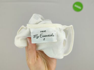 Bluzka damska Next - Kolor: biały - Krój: prosty, lekko wydłużony tył, krótkie rękawy - Dekolt: okrągły - Zapięcie: mały guziczek z tyłu przy dekolcie (pęknięcie łezka) - Materiał: 100% poliester ...