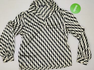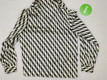 Czarna bluzka SHEIN z długim rękawem i ozdobnym, złotym geometrycznym nadrukiem (ukośna kratka). - Marka: SHEIN - Rozmiar z metki: EU 38 / US 6 (M) - Krój: luźniejsza, zapinane mankiety z guzikie...