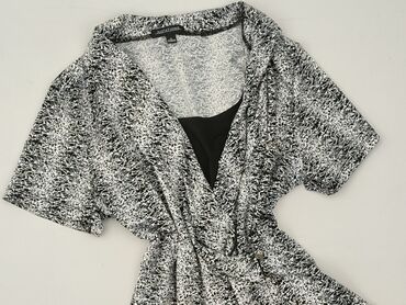 Bluzka damska z krótkim rękawem, rozmiar S. - Fason: luźniejszy, z lekkim marszczeniem/zakładkami z przodu pod dekoltem - Dekolt: zaokrąglony - Długość rękawa: krótki - Wzór: abstrakcyjny, wieloba...