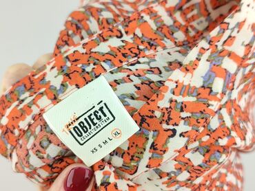 Bluzka damska OBJECT, rozmiar 36. - Krój: luźny, z krótkim rękawem typu kimono; okrągły dekolt - Wzór: szerokie i wąskie pasy w kolorach czarnym, białym, musztardowym oraz akcentach kobaltowych - ...