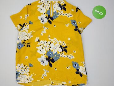 Bluzka damska ONLY, rozmiar S - Kolor: intensywny żółty - Wzór: drobne kwiaty/rozetki w odcieniach bieli i błękitu - Fason: luźna góra z taliowaniem na dole; szerokie rękawy 3/4 - Dekolt: okrągły ...