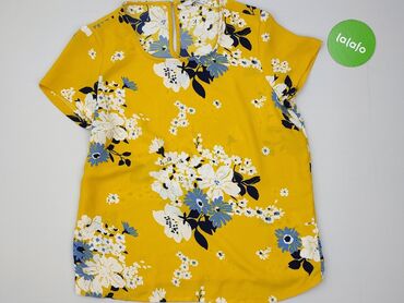 Bluzka damska ONLY - Rozmiar: 42 (na metce) - Kolor: intensywny żółty - Wzór: kwiatowy – białe i niebieskie kwiaty z granatowymi akcentami - Krój: luźniejszy, zaokrąglony dół z przodu i z tyłu, kr...